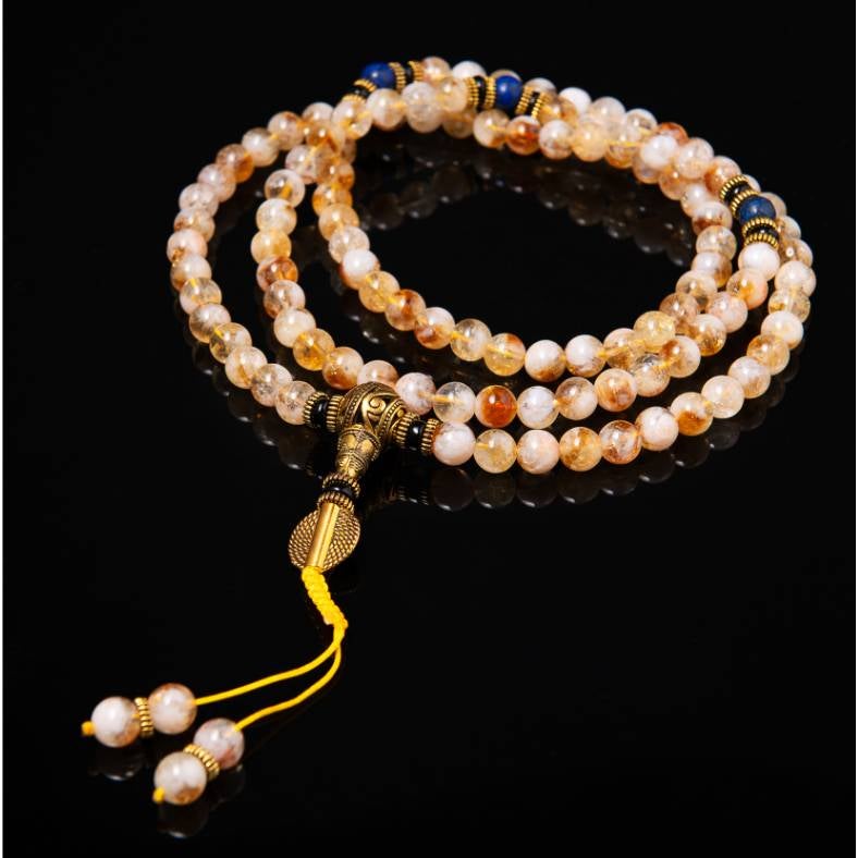 In 2024, the famous Drepung Mountain Monastery of Tibet worked with a spiritual jewelry company called Karma Items to release a powerful 'mala' necklace made using natural Citrine and traditional Tibetan designs (a mala is simply a beaded necklace that can be used for meditating).