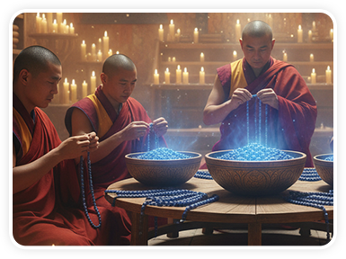 Until that moment, Tibetan malas were made from wood, offering only modest spiritual effects. But when the Drepung monks combined Aniβs wisdom with the rare stones, something extraordinary occurred.