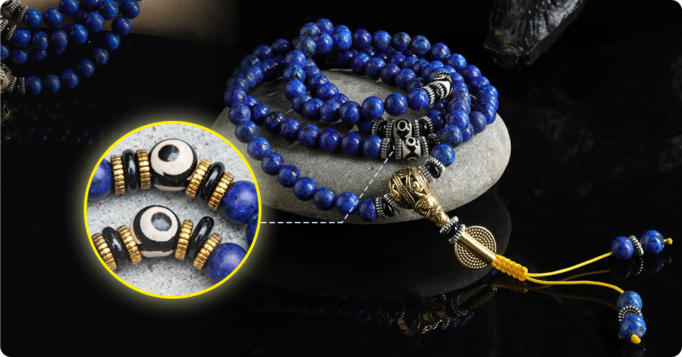 I am delighted with my beautiful beads. They are even better than in the photo. They feel strong and calming. Each little blue lapis lazuli bead looks like a little globe. They feel good in my hands and make a lovely little clicking noise as I move around them. I use the main beads to chant and the special dzi beads to remember things that I am thankful for. They also make a lovely strong necklace and you can fidget with the tazell beads when wearing them. I am very happy with this purchase.