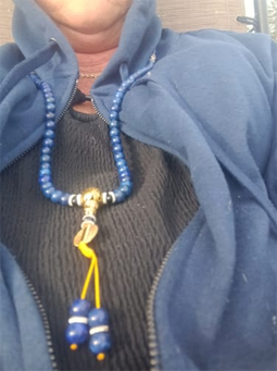 Iβve always been attracted to lapis lazuli stone and this mala is exceptional. Iβm also happy with my copper bracelet. I gave the second one to a new grandma, as I too am the grandmother of the same baby named Aiya.