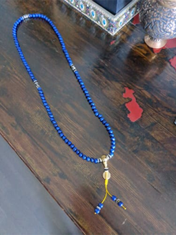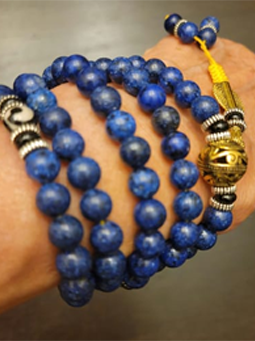 The malas are crafted using specially-chosen Lapis Lazuli from the mountains of Chile.