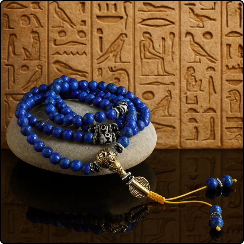 The malas are crafted using specially-chosen Lapis Lazuli from the mountains of Chile. These rare stones perfectly match the powerful properties of the Egyptian crystals that gave ancient monks their amazing abilities.
